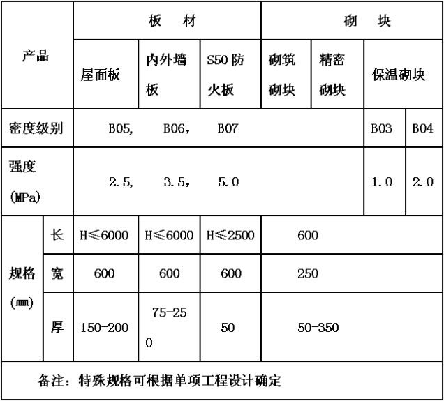 加氣產(chǎn)品各種規(guī)格: